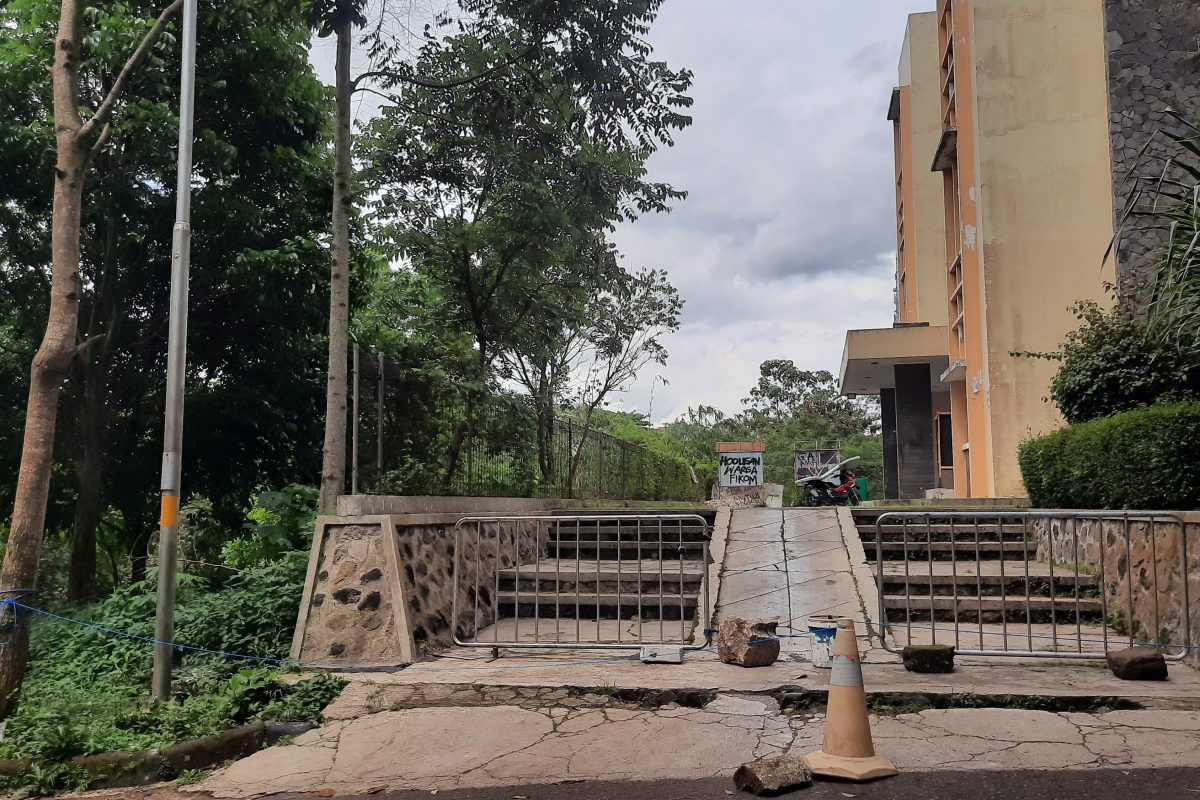 Penutupan akses masuk Student Centre Fikom, Rabu 1 Maret 2023. (dJatinangor/Muti)